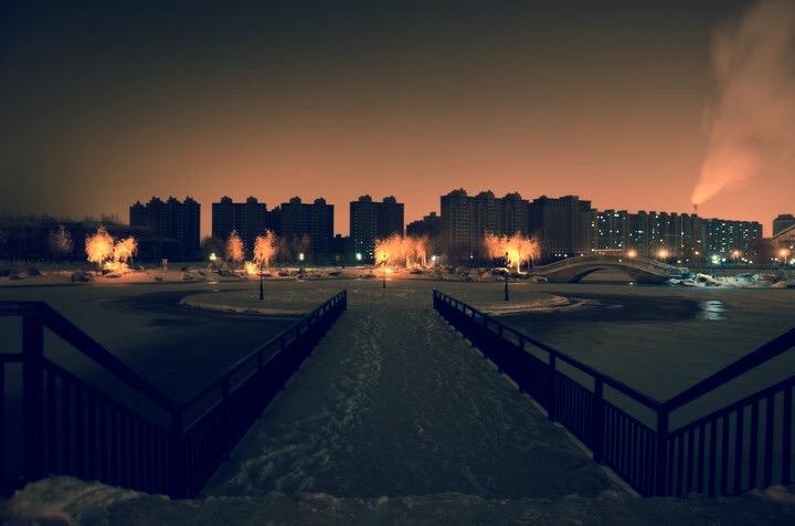 西门大雪中按动快门,拍摄星空,泓泓的一池观澜湖;