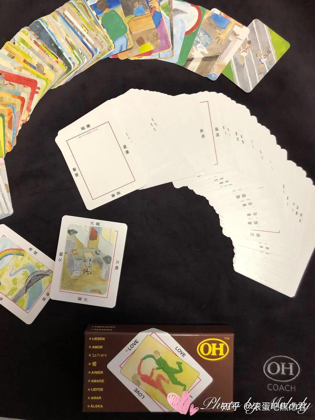 经典OH卡由88张图像卡和88张文字卡组成,共有176张卡片。图像卡可以叠放到文字卡上,产生不同的组合,能产生7744种不同的组合,每天换1种不同的字卡和图卡组合,需要21年。这88张图像卡里面包含了我们日常生活的各个层面,所以使用场景更为广泛。
