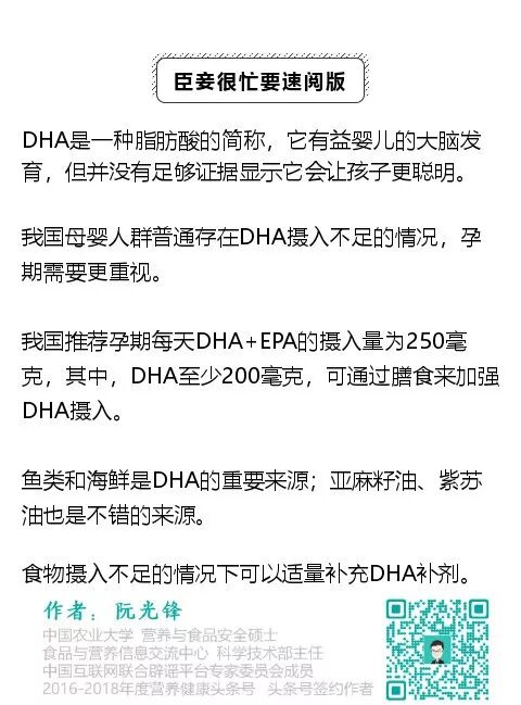 很多人之所以要吃DHA,主要是希望让宝宝更聪明。不过,目前并没有足够的证据显示吃DHA可以让宝宝更聪明。所以,大家也不要抱太大期望值。但是,DHA对孩子的健康的确有好处,还是要注意获得足够的DHA。
