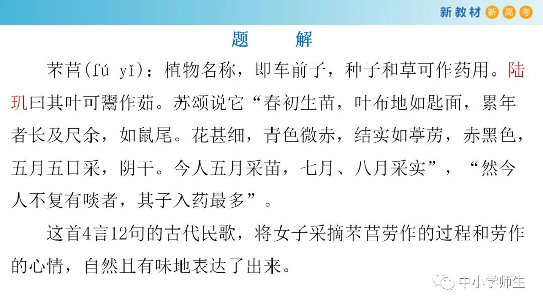 手机访问:wap.265xx.com新版高中语文必修上册第6课-1《芣苢/诗经·周南》微课视频+知识点