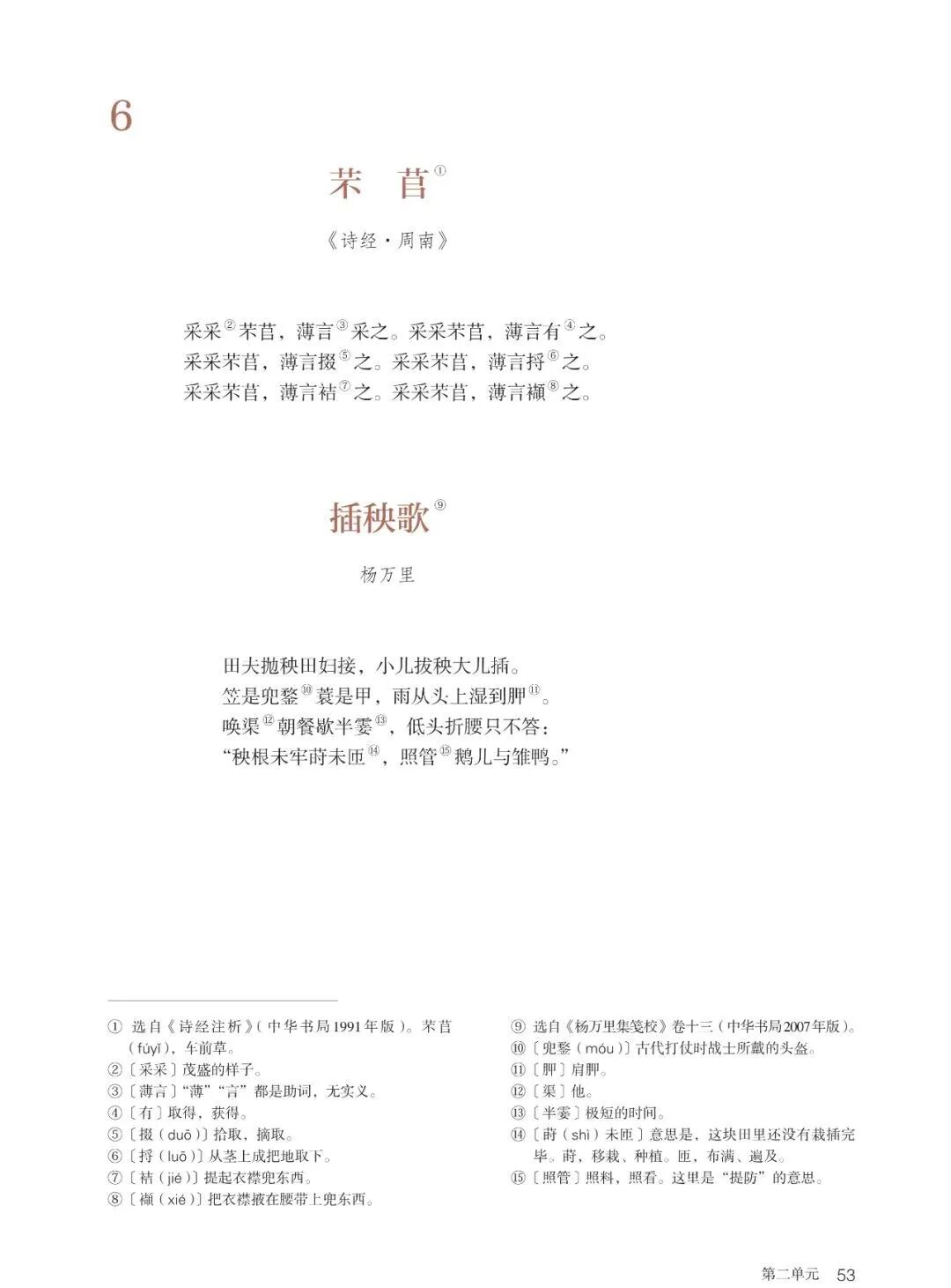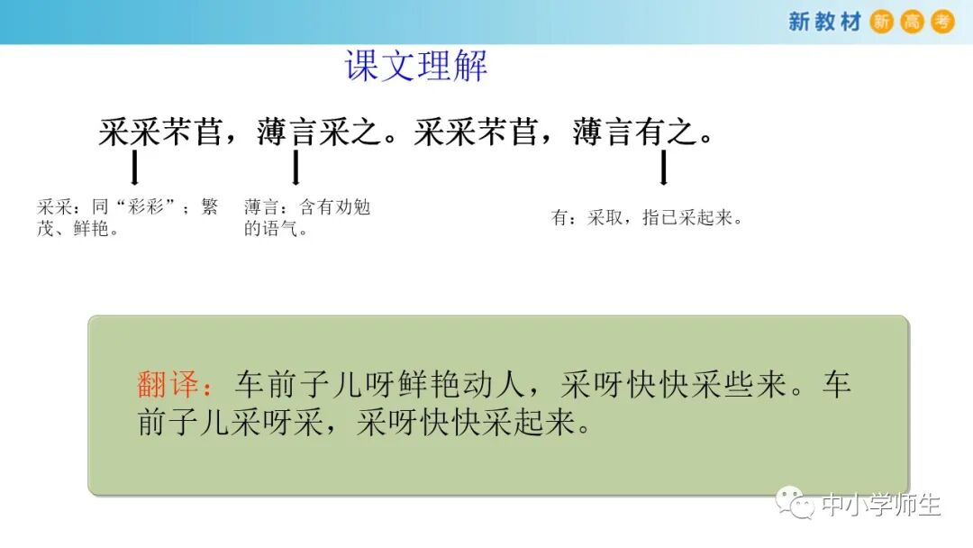 采呀采呀采芣苢,大家一起采下来。采呀采呀采芣苢,芣苢已经有了哎。