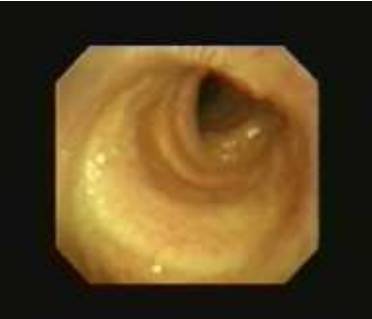 急诊监护室内部分高龄、营养状况很差,长期气管插管的病人偶有发现鼻饲时呛咳,或者气道内吸出胃内容物,如鼻饲液等情况。怀疑气管插管球囊压力过大或者长期压迫气道壁导致气管食管瘘,但一般的影像学检查根本无法诊断,可在支气管镜直视下通过美兰实验来证实是否存在气管食管瘘,为进一步治疗提供诊断依据。[10]