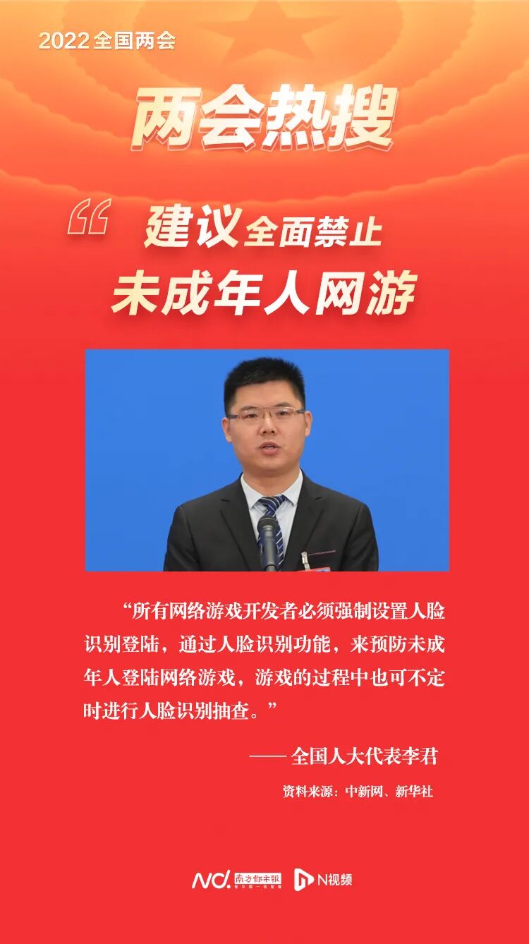 ↓ ↓ ↓今年全国两会,全国人大代表、四川省广元市苍溪县白驿镇岫云村党支部书记李君建议,全面禁止未成年人玩网络游戏,对向未成年人提供网络游戏服务的企业追究相关责任。“去年相关部门出台了政策,明确18岁以下未成年人玩游戏的时间每天只能有1小时,且只能在周末。但我们村有的留守儿童使用长辈的身份证注册游戏账号,规定形同虚设。”