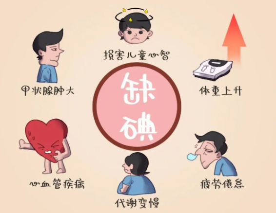 6.成年人缺碘可能会导致甲状腺功能低下,容易疲劳、精神不集中、工作效率下降。