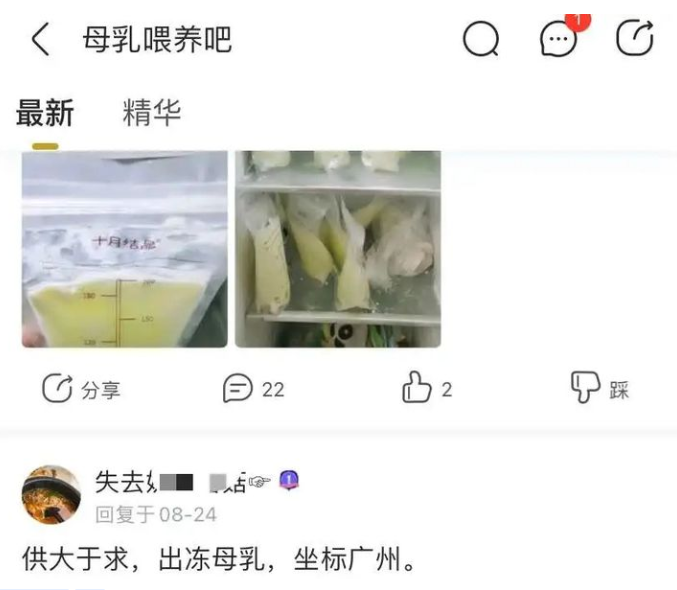 孩子刚刚生下,吃的第一口食物基本上都妈妈的母乳, 为了不让孩子饿着,也以免让产妇承受涨奶之痛,会有人选择先将母乳吸出来,按量存储好后,随时都可以给孩子吃。 可没想到,母乳已经不是只有孩子在吃,背后隐藏着一条灰色产业链... 冰冻人乳生意 近日,有记者发现在某社交平台上,有人发布出售人乳的贴子,多数经过微信或者QQ与买家联系,或是通过咸鱼假扮成肥皂、鞋子、乳霜、化妆品、母乳储存袋等出售。 真的听完都觉得“我看不懂,我大受震撼”,现在真的是什么有得“卖”,通过记者了解、调查,发现此事并没有表明看起来这么简单。