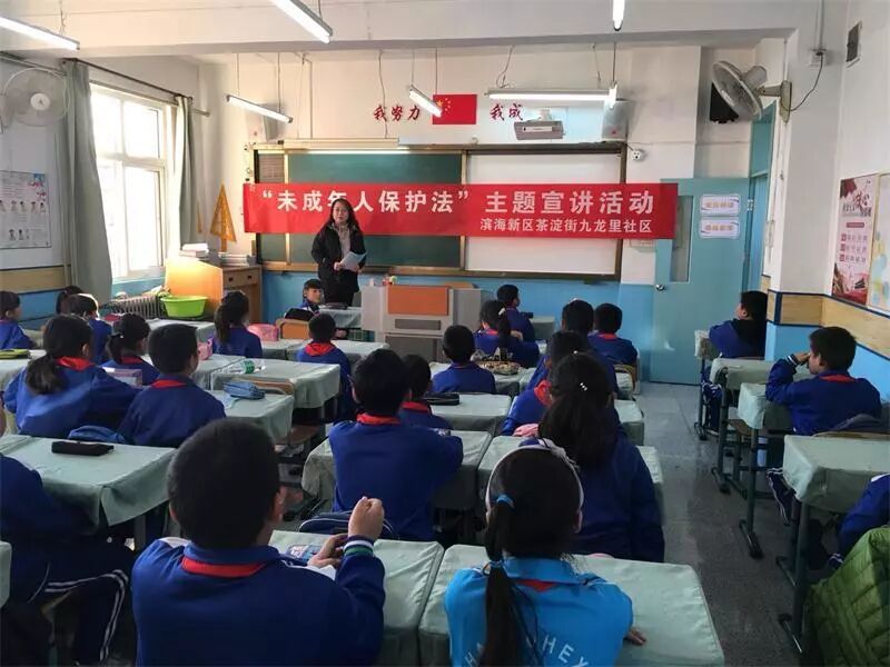 为提高《中华人民共和国未成年人保护法》的宣传力度,保护未成年人的身心健康,保障未成年人的合法权益,促进未成年人在德、智、体等方面全面发展,在全社会营造未成年人健康成长的良好氛围,茶淀街九龙里社区日前联合河西三小组织开展《未成年人保护法》主题宣讲活动。活动中社区工作人员向同学们讲解了《未成年人保护法》的有关法律规定,回答了大家关心的问题,还与师生互动交流,现场气氛热烈。活动中发放了宣传材料50余份。