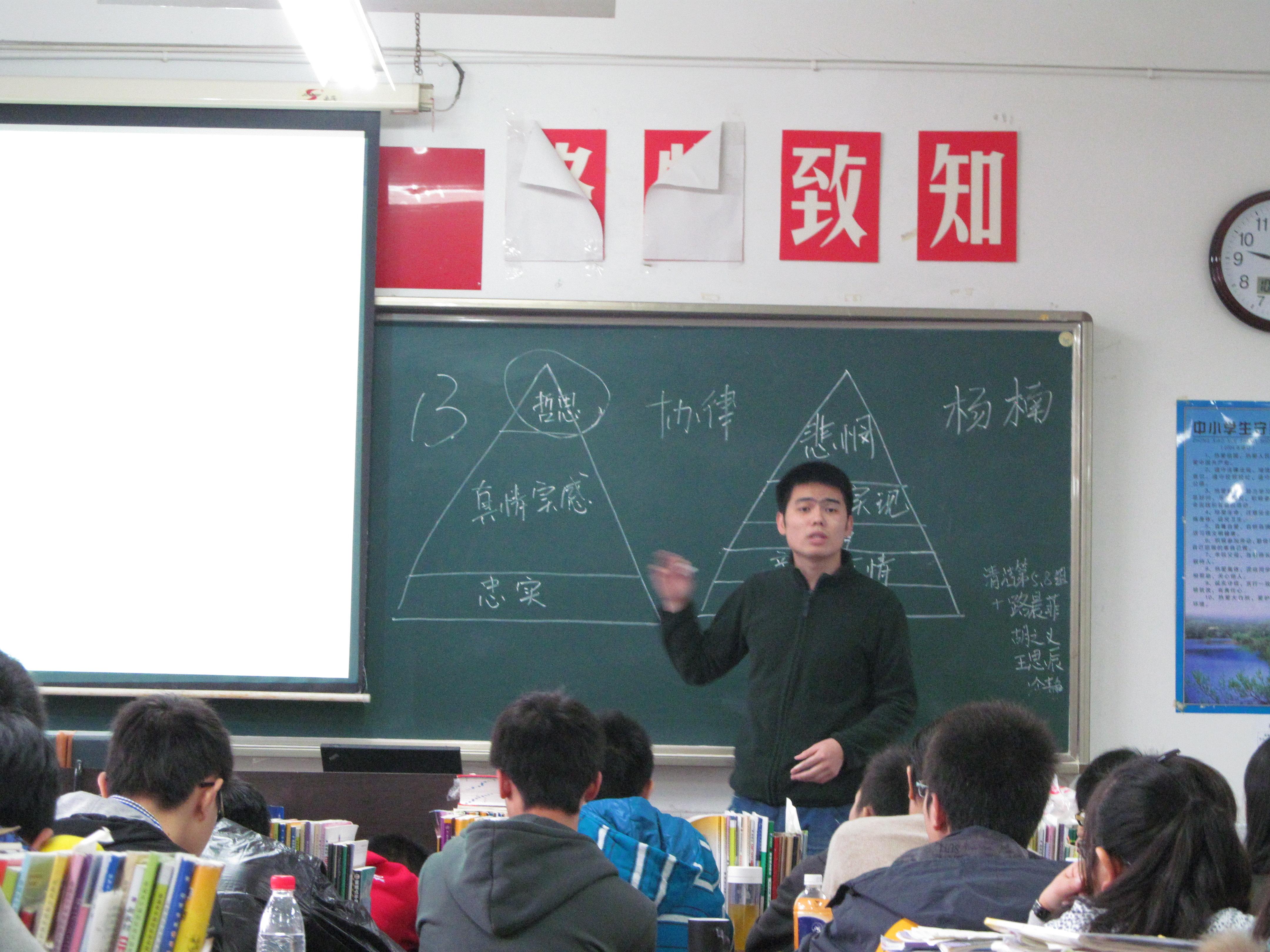 其实我不是高中语文老师,不太清楚他的高中在哪所学校念的。但我比较自负地讲,可能全国没有一个高中语文老师是这么讲诗歌的,也不会有第二个语文老师这么讲《春江花月夜》。