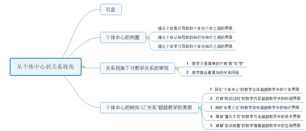 叫做《从个体中心到关系视角教学中的界限及其超越》,那篇文章里面就在阐述一个观点,说,