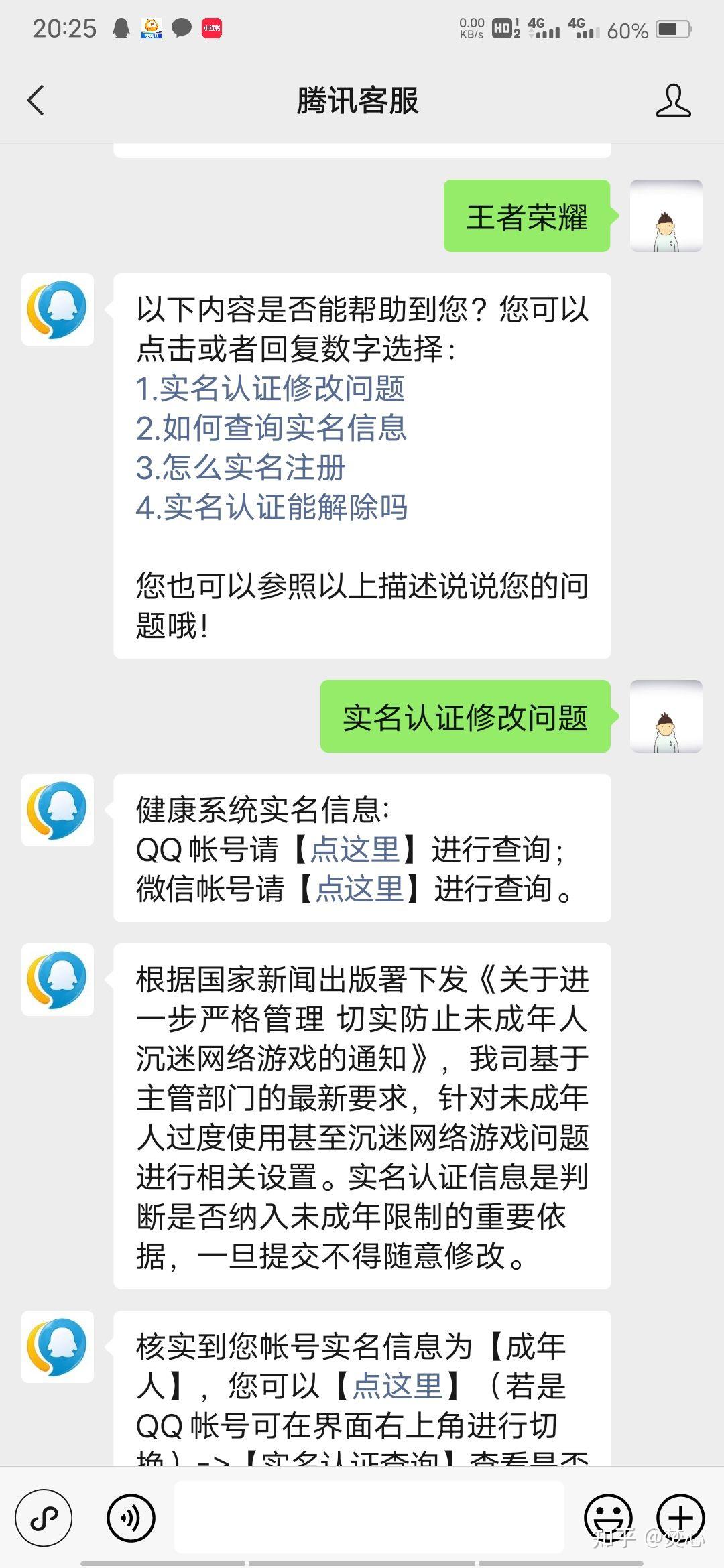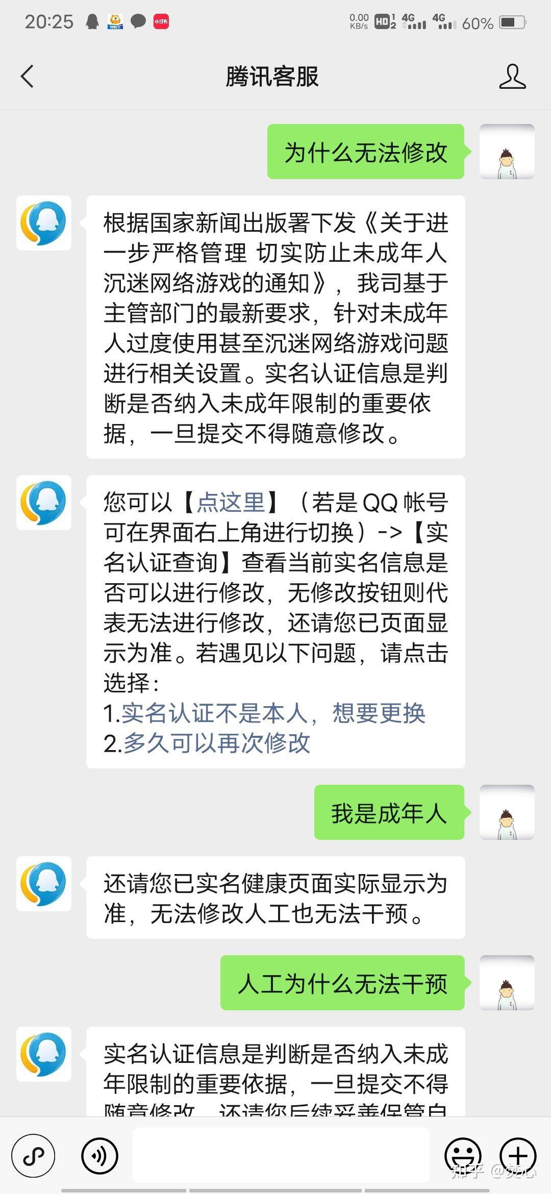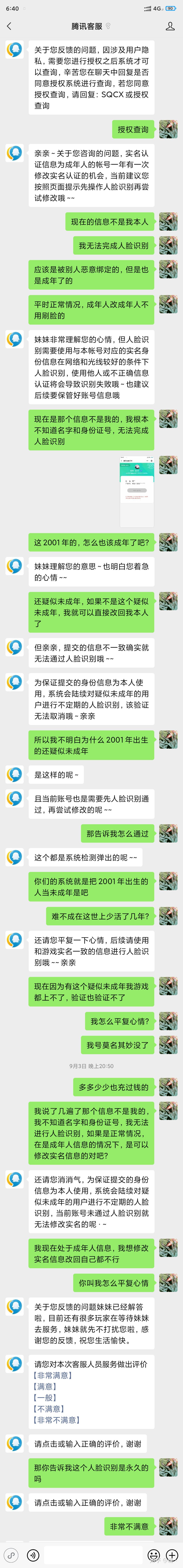 好了什么方法都试过了,彻底佛系了,我不打算在让家里人验脸来获得成年人体验卡了,整个不管了,低保一样玩,平时骚扰客服玩玩。结果前几天,照常的转人工客服,用了一下不同的话术