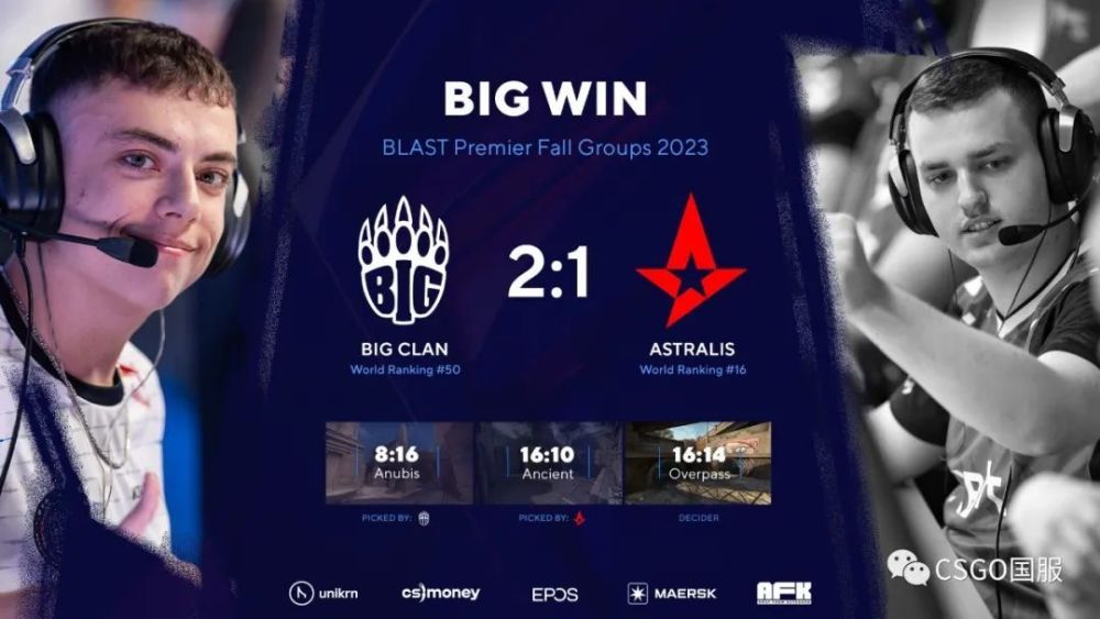 败者组Astralis 1-2惨遭BIG逆转,A队两战全败已锁定B组第4。