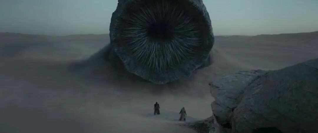 浪漫主义的情动逻辑缔造了银幕上生态巨物的崇高形态,正如18世纪经验派美学家伯克所认为的那样,崇高美的体积巨大、奔放不羁等特点是“心灵所能感知到的最强烈的情感”28。好莱坞导演丹尼斯·维伦纽瓦(Denis Villeneuve)在科幻电影《降临》《银翼杀手2049》中确立了对崇高审美形态的影像追求,到了新作《沙丘》中,不仅成功塑造了引发恐怖感的崇高审美形态,并且整个叙事都以生态巨物的情动逻辑为推动。