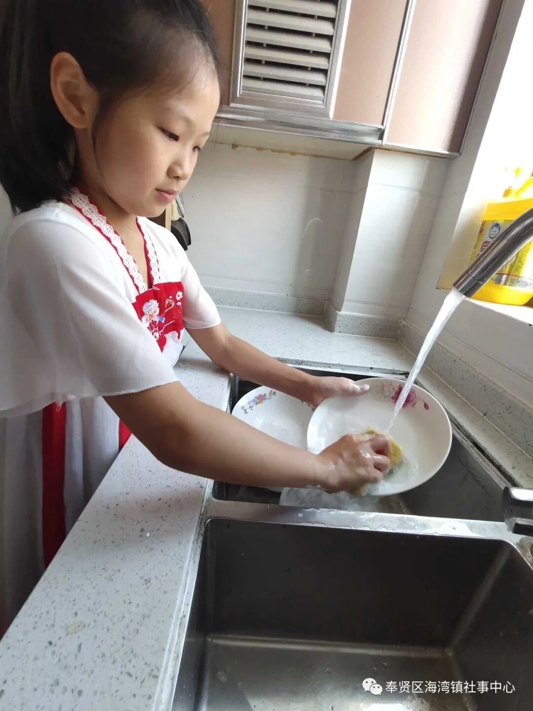 同学们在家也能开展生活实践,看,小小身体也有大大能量,学做家务活一点都不比大人逊色。