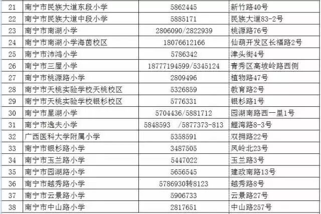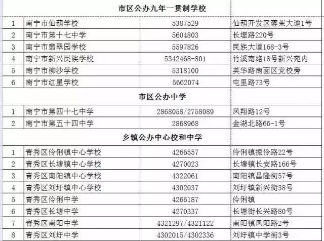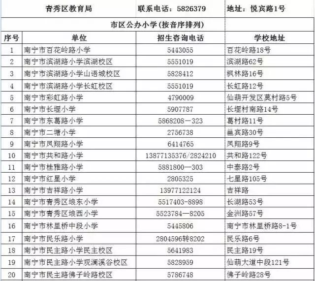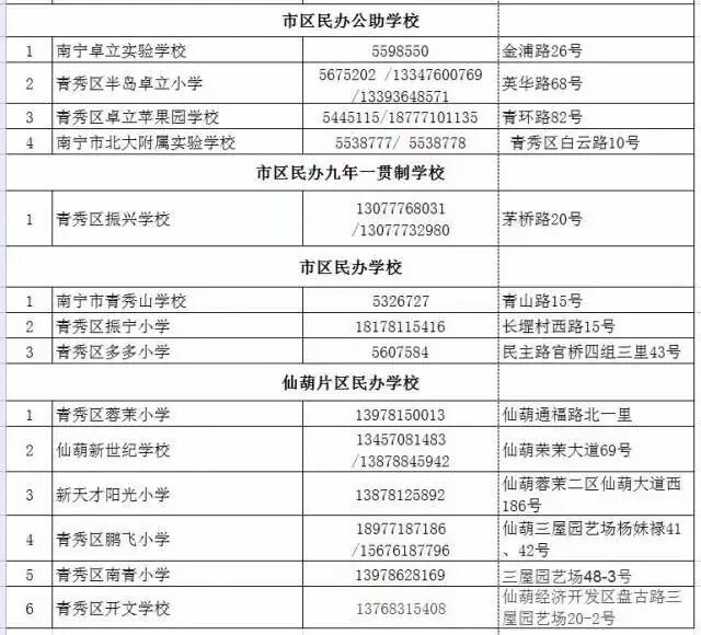 附:青秀区2017年招生咨询电话一览表
