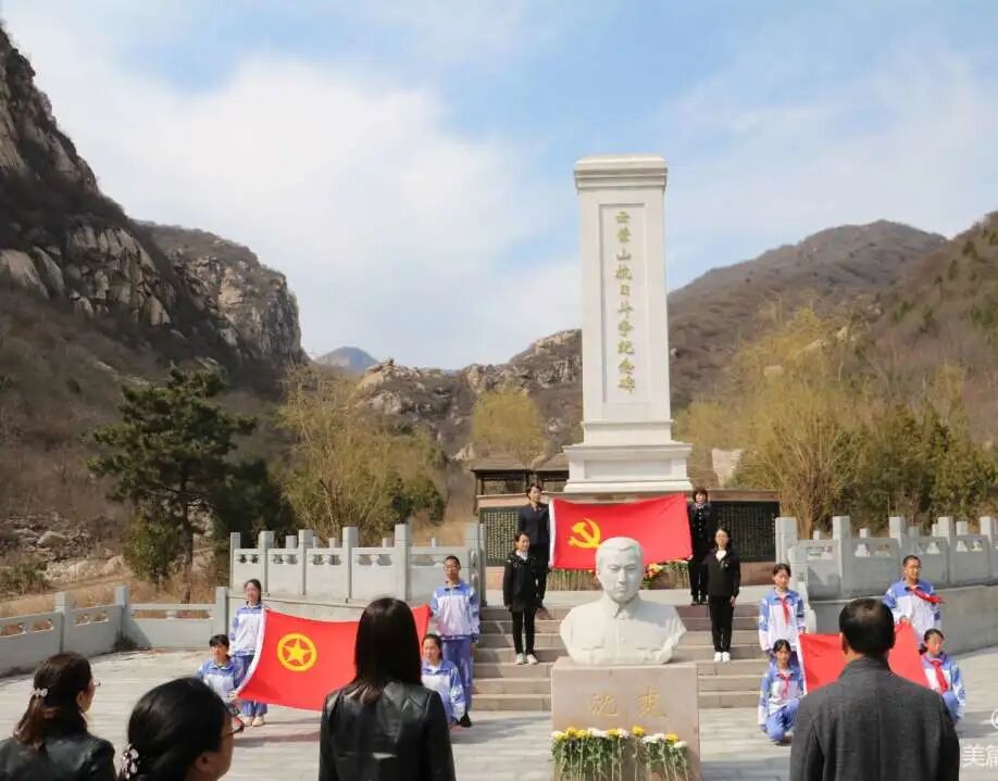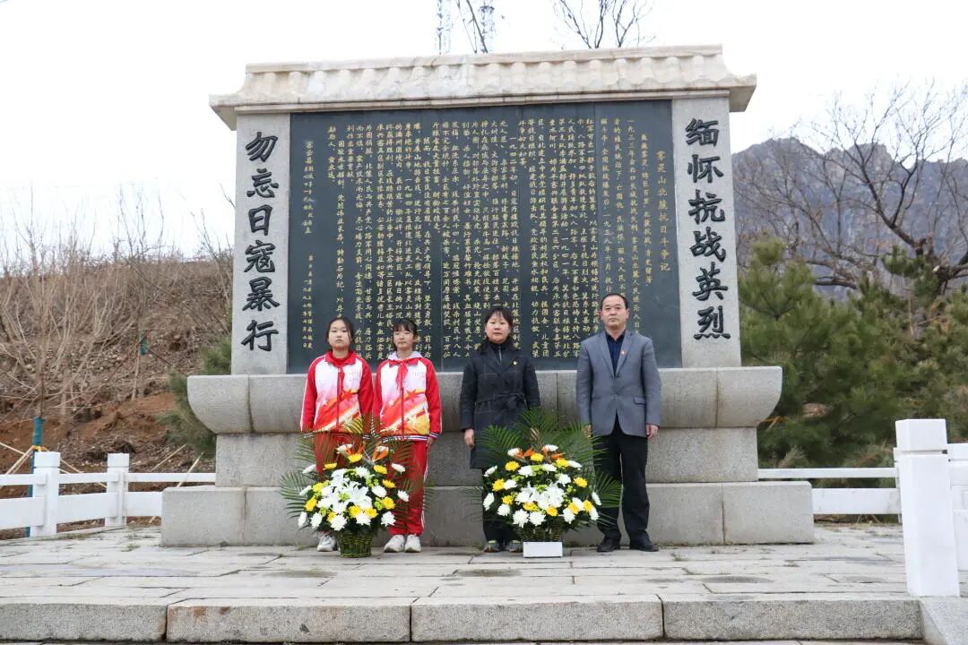 “天地英雄气,千秋尚凛然。” 西田各庄镇中心小学教师和同学们来到云蒙山抗日革命纪念碑为烈士扫墓、敬献鲜花。