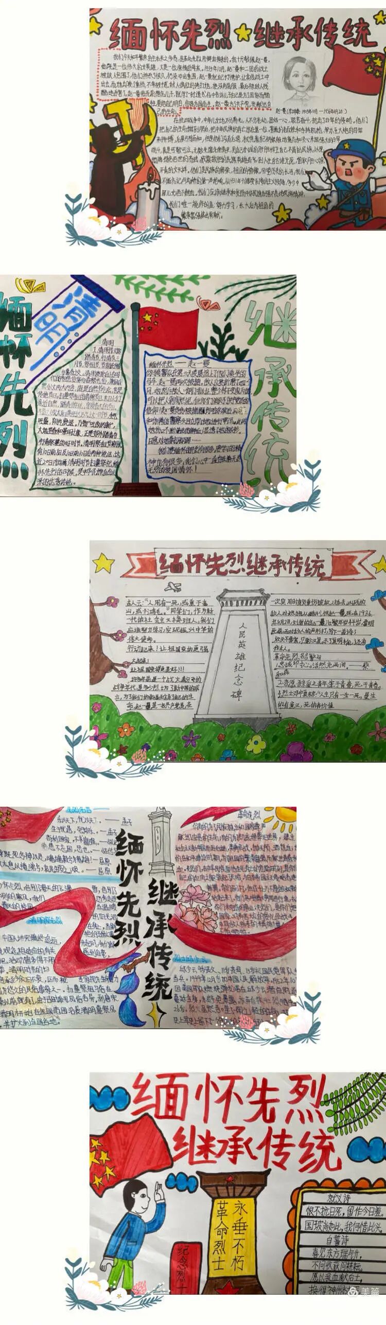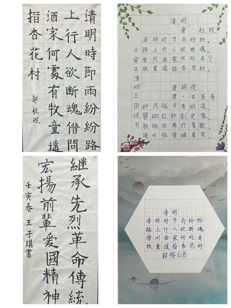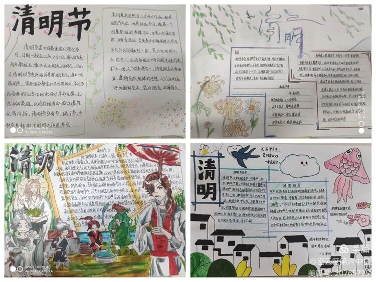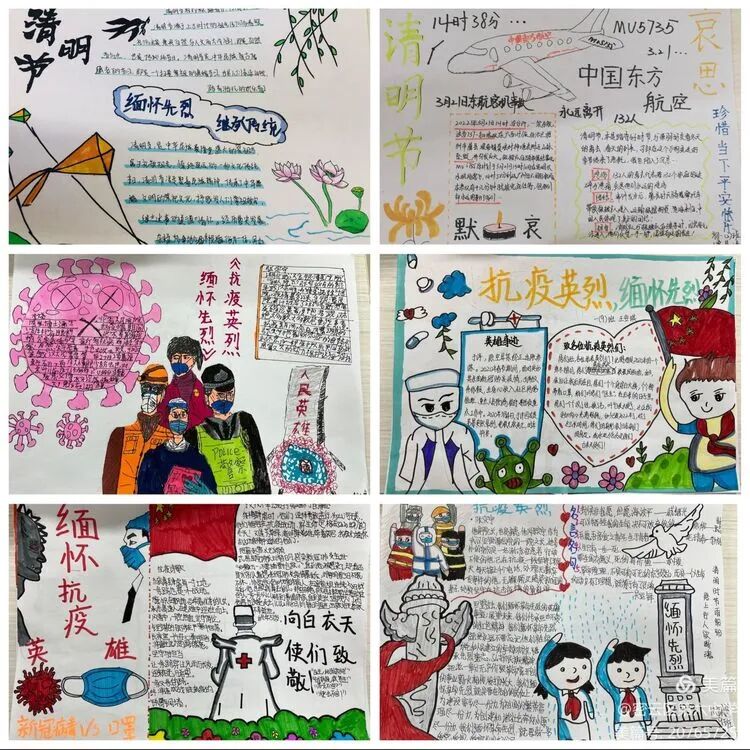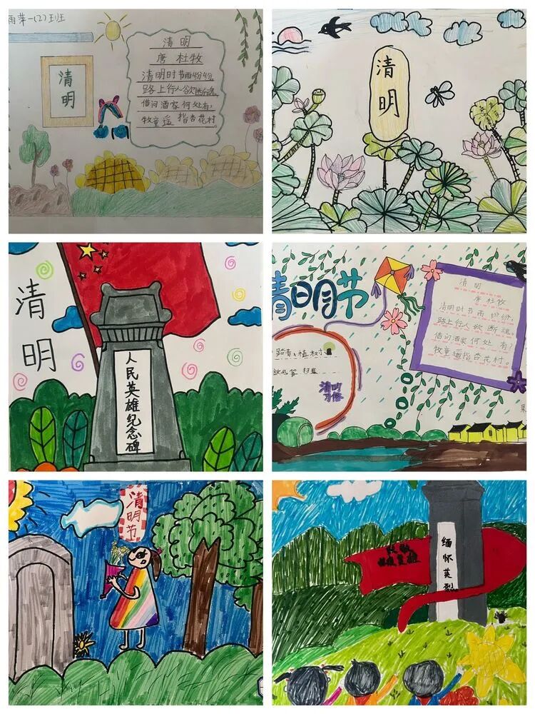 学生们以清明传统习俗为主题,将清明节和诗词结合制作手抄报,表达了同学们对先烈们的敬仰与缅怀之情。