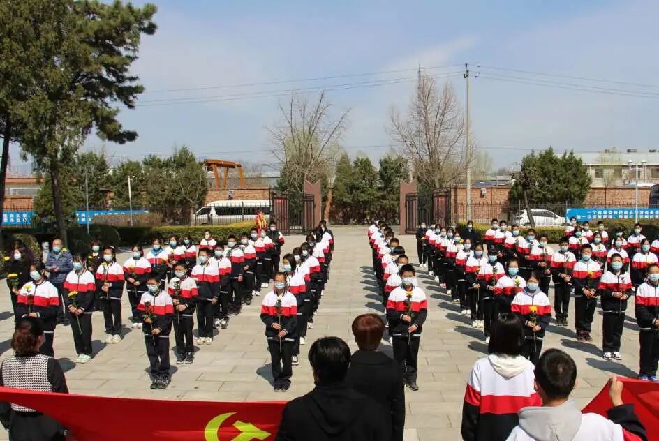 2022年4月1日上午,十里堡镇中心小学党支部书记与团支部书记带领包括党员教师、学生团员与入团积极分子在内的师生来到密云区革命烈士陵园,陵园内庄严肃穆,全体师生心情沉重,向先烈致敬。