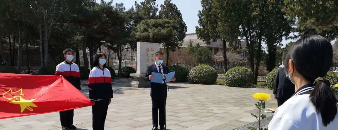 学校师生到白乙化烈士陵园、王亢纪念碑前敬献花篮。