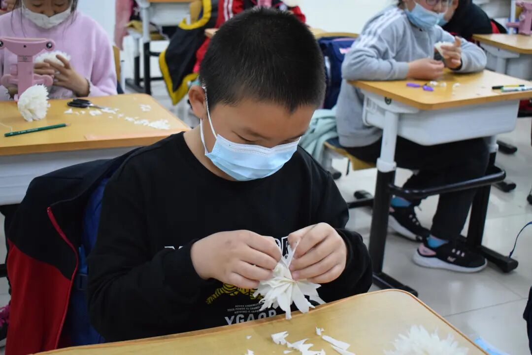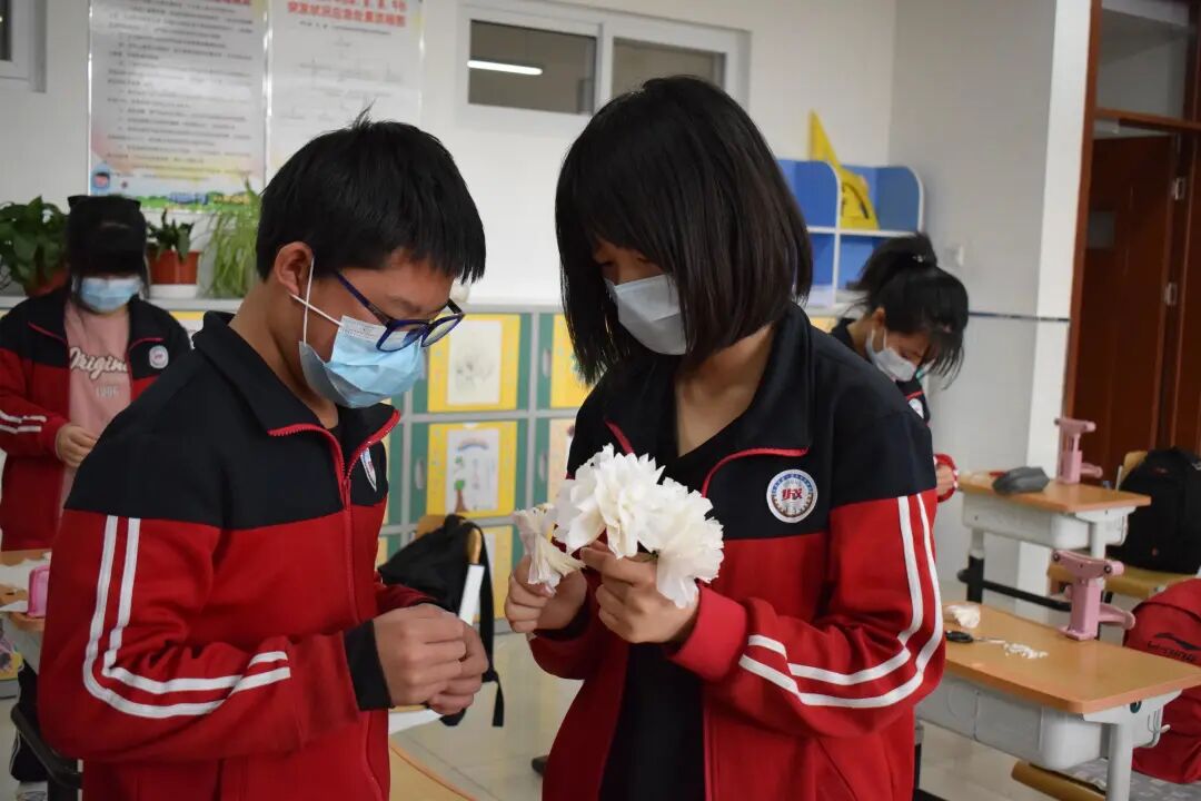 ??师生亲手制作小白花