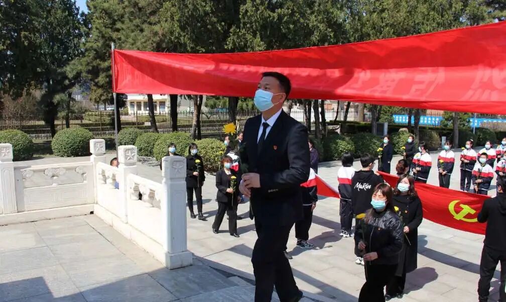 新城镇中心小学党支部书记郎国瑞同志带领党员代表、少先队员代表在雾灵碑苑开展“党建统领谱写新篇章——传承红色基因 做四有好老师”主题党日活动和“童心向党,缅怀革命先烈,做新时代好少年”清明祭扫活动。