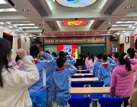 少先队员代表郝欣冉同学为大家讲述了《朱长林与劳动童子团》的故事,向少先队员们发起重温红色经典、寻访革命英雄、争做红领巾讲解员的倡议,呼吁少先队员们以吾辈之青春,守护盛世中华。