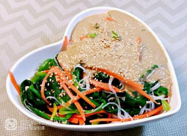 9.拌凉菜用的芝麻酱建议稀一些,这样吃的时候比较不容易糊嘴。撒上熟的白芝麻