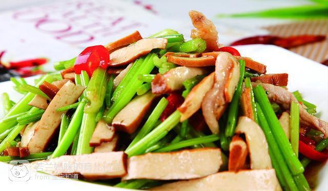 食材:芹菜适量、香干适量、蒜适量、红辣椒适量。