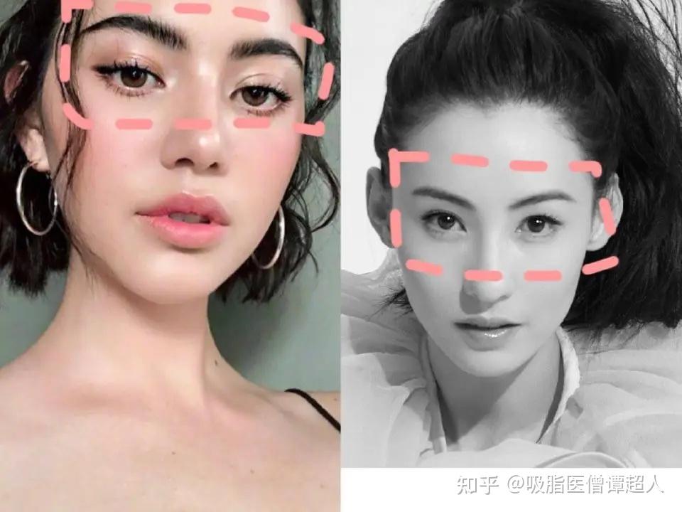 眉眼间距的距离同时影响着眉心三角区以及山根处的美学(这里就不多讲了),眉眼间距和双眼皮始终的宽度可以营造出深邃的情感和神秘感。