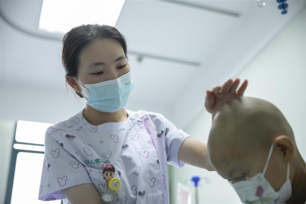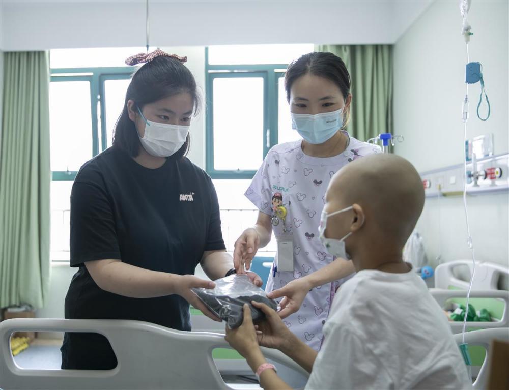 李晖主任介绍,化疗是治疗肿瘤、白血病的重要手段,但在治疗过程中,受到药物影响,患儿会出现不同程度的脱发,医护人员会建议患儿在化疗前剃掉头发。为帮孩子们重拾自信,以积极乐观的心态与病魔抗争,医护人员和社工会定期对他们进行开导,也会建议他们戴上自己喜欢的帽子,或是戴上假发。