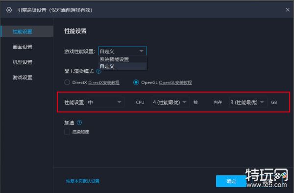 进入游戏后,点击引擎右上角设置—引擎设置—性能设置,先将游戏性能设置调整为”自定义“,再调整至需要的数值,通常”中“为系统根据电脑情况给的最优值,具体可根据游戏要求进行调整,若游戏推荐的性能设置超过电脑性能的三分之二,若想达到完美的游戏效果,建议升级电脑配置。