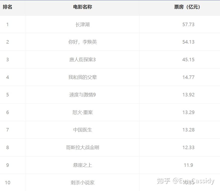 2021年国内票房前十