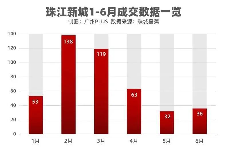 在2-3月,珠江新城出现了两波成交高峰,接着又迅速回落,但在6月份,其成交量出现了少量抬升,甚至还有过亿的资产成交。