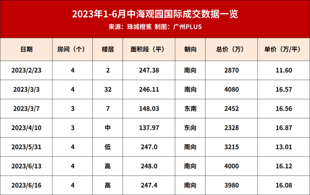 回看2023年项目的成交数据,同面积段产品的成交价稳在16万/平,但都是以低楼层或者高楼层为主,中楼层根本没有放盘。