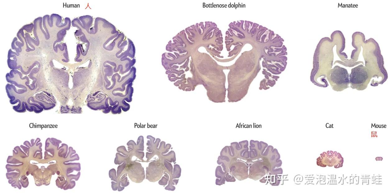 不同物种之间的大脑体积对比