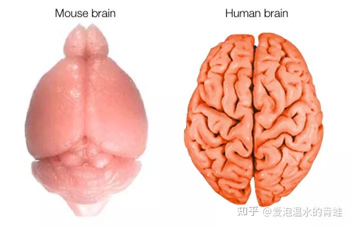 左侧:老鼠大脑;右侧:人类大脑