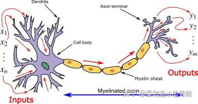 神经细胞结构。cell body:胞体;myelin sheat 髓鞘