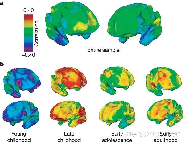总体来讲,这段时期人的脑灰质占比是不断缓慢下降的,而白质占比则不断增高。