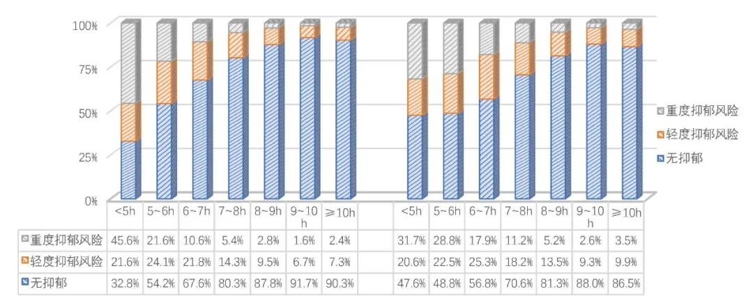 上学日(左)和休息日(右)睡眠时长与青少年的抑郁风险检出率
