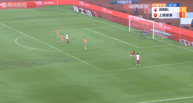 海港队的张琳芃第41分钟在本方禁区内手球,主裁判经过VAR(视频助理裁判)回看后吹罚点球,深圳队张源一蹴而就,将比分扳平。
