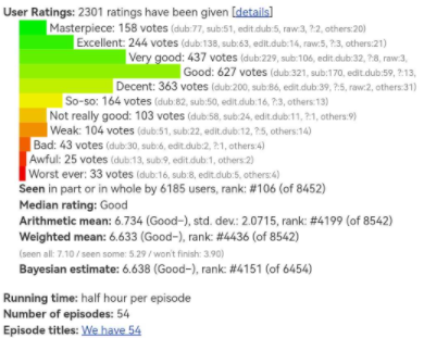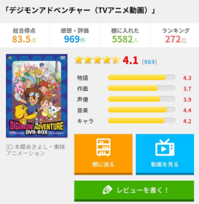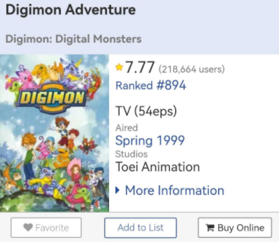 我前段时间特别去国内外各大动画评分网站上搜了下对数码宝贝第一部的评价,发现数码宝贝在国内网站bangumi上排到了77的高名次,但在日本就落到了272位,在欧美更是惨不忍睹。
