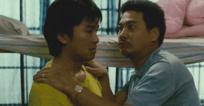 开奖的是周润发,哥哥直接冲上台去,像个袋鼠一样挂发哥身上,有腰伤的发哥宠溺地抱住他,任他胡闹。