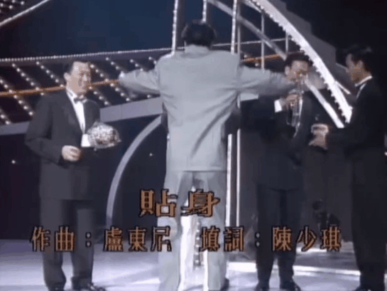又一次颁奖礼,张国荣凭借《贴身》拿十大劲歌金曲奖。