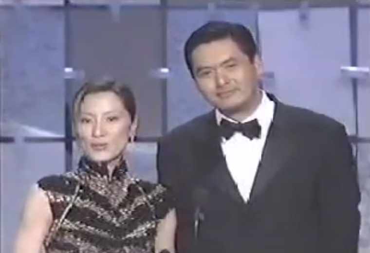 电影《卧虎藏龙》获得奥斯卡十项提名,她和周润发一起携手出席奥斯卡,当起颁奖嘉宾。