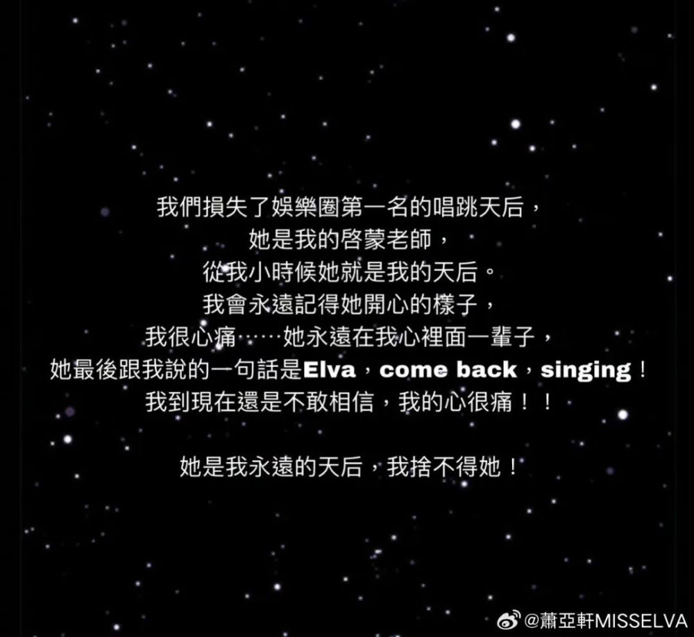 不久前,李玟才跟同样陷入抑郁,选择淡圈的萧亚轩说:Elva,come back,singing!