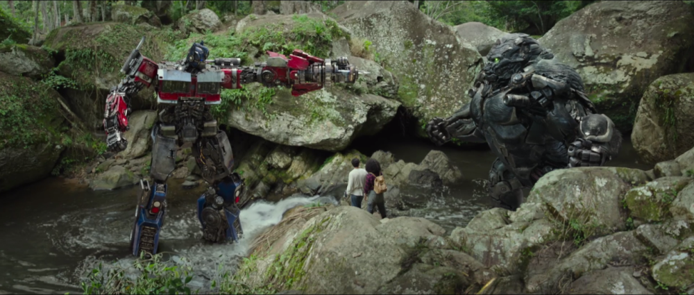 电影一开始,巨无霸成员擎天圣及其父亲登场,擎天圣的造型妥妥地就是一款机械《金刚》,本以为会一番争夺,结果一击毙命,这款“金刚”实在有点拉。而擎天圣在秘鲁丛林里挂树跳跃的时候,更是为树担心了很久,机械“金刚”挂在树上,导演想过承重力吗?树真的可以吗?