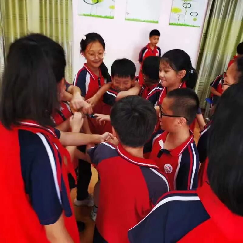 热身活动“解开千千结”,燃起了孩子们积极参与活动的热情,让拘谨的孩子们放下顾虑与胆怯,大胆牵住左邻右舍的同学的手。整个活动气氛热烈,大家通过集体的智慧和努力,解开了千千结。让孩子们感受到了纵有千千结,终有千千解的道理。不必为成长过程中的小烦恼而焦虑。