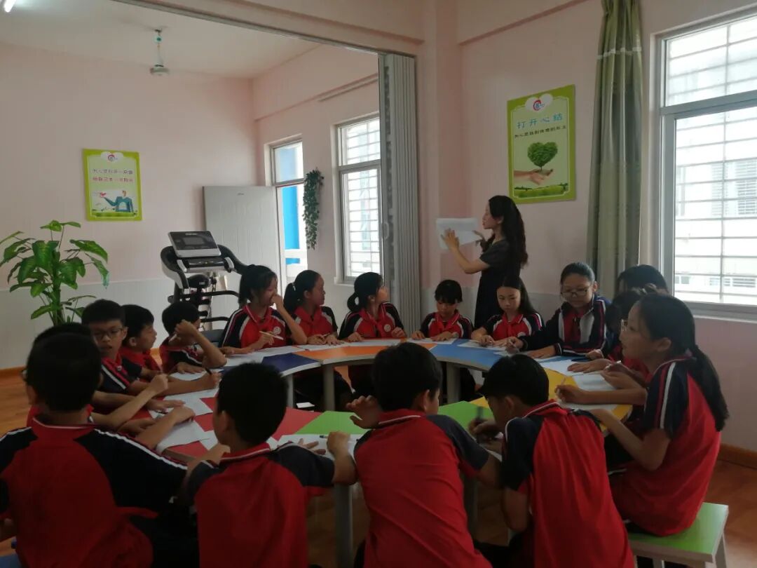 心理是行为的花朵,为了培养孩子健康的行为品质,呵护健康的美好心灵,增强学生的承挫能力,学会管理自己,完善自我。6月15日午后,石斋小学“阳光驿站”迎来了一群五年段的孩子们,他们正在开展以“重要的我们”为主题的团体心理辅导活动。