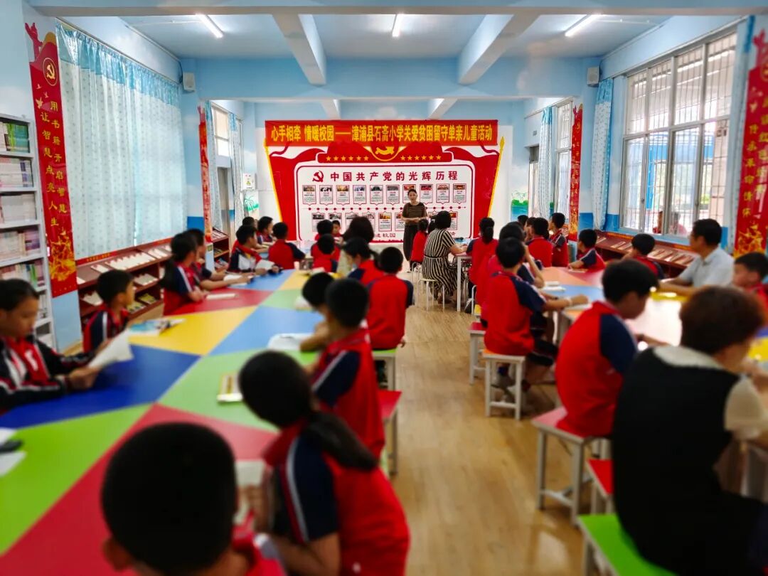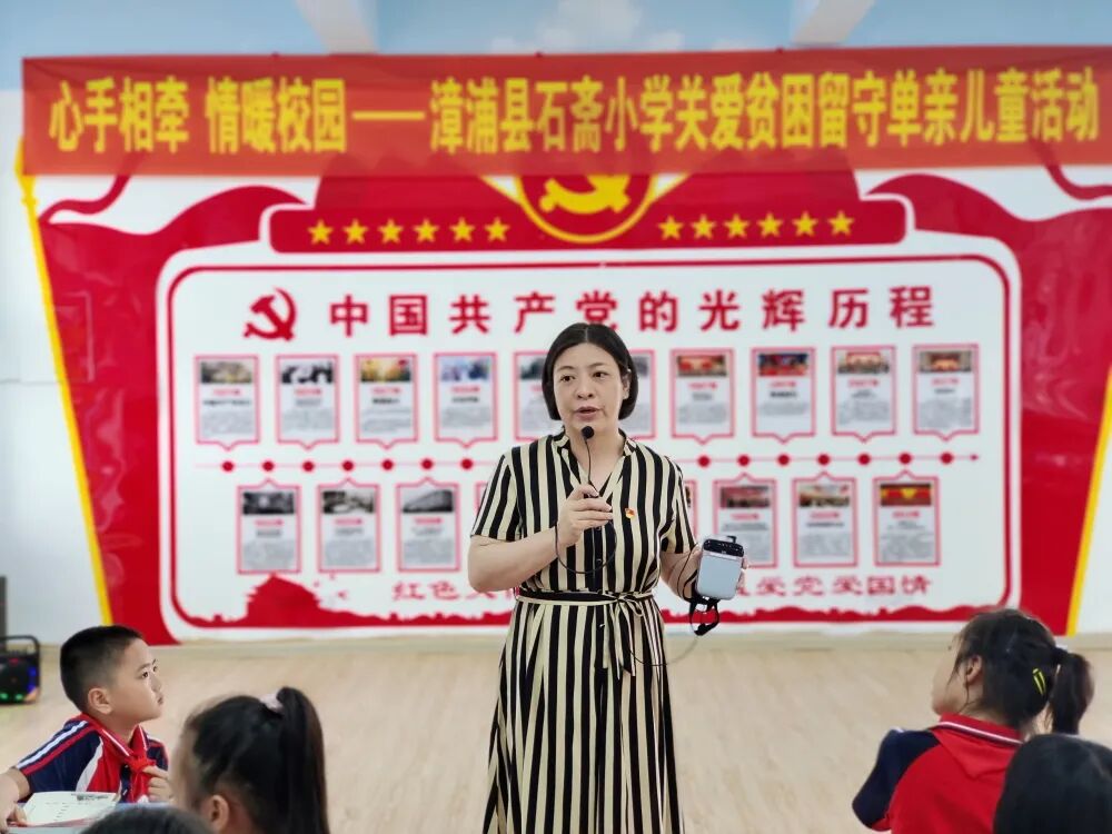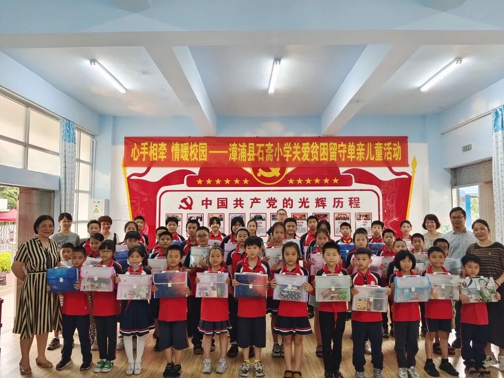 为了更好地关注留守、单亲、贫困儿童的心理健康,让孩子们沐浴在爱的阳光里健康成长。六一节前夕,石斋小学开展“心手相牵 情暖校园——关爱留守、单亲、贫困儿童活动”。此活动收到了县关工委的爱心支持,给孩子带来了一份浓浓的关爱。这些孩子在六一节前夕收到一份特殊的礼物,让儿童节倍感温馨快乐。活动中,李敏华校长鼓励孩子们要积极面对生活,阳光向上,学会感恩,快乐成长。分管的副校长们也和孩子们促膝谈心,交流,倾听他(她)们的心声。让孩子感受到留守不孤单,共享关爱的温暖。