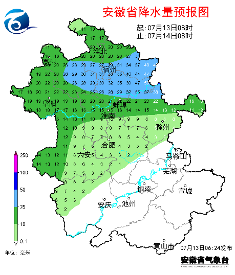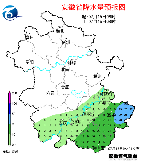 未来三天全省逐日降雨量预报今明两天部分地区持续高温天气。13日至14日全省最高气温33~35℃,其中大别山区和江南部分地区35~37℃。15日后全省最高气温普遍在35℃以下。一周全省具体预报