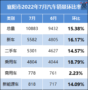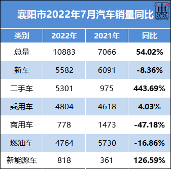 手机访问:wap.265xx.com2022年7月襄阳市汽车销量数据分析 同比上涨54.02%