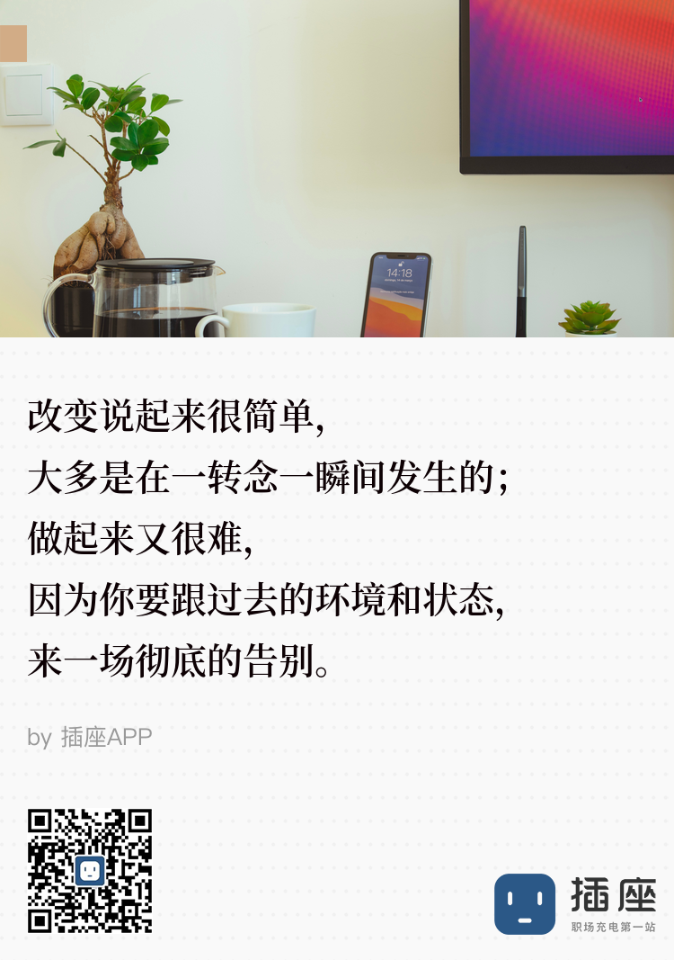 改变说起来很简单,大多是在一转念一瞬间发生的;做起来又很难,因为你要跟过去的环境和状态,来一场彻底的告别。